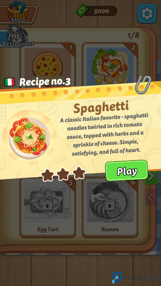 完成菜肴即可赚取收入,解锁新食谱、食材和设施。