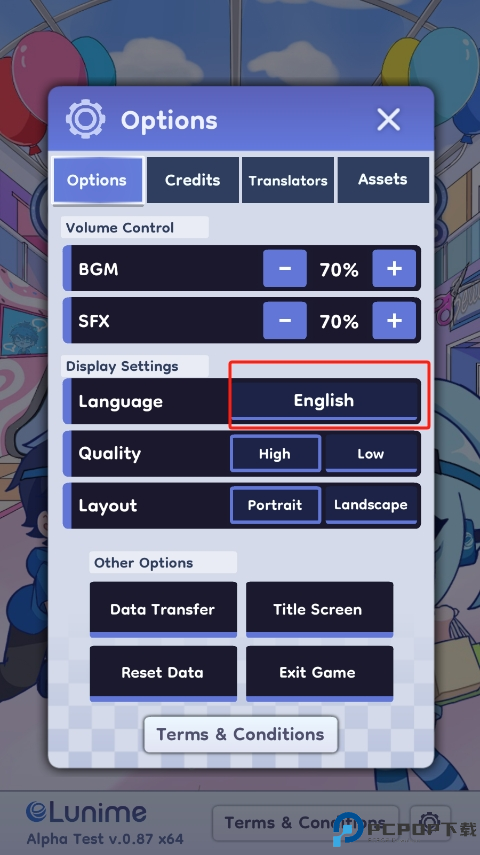 2、找到Options下的Language,点击English。
