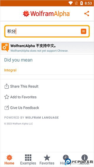 2、如下图所示,在WolframAlpha中通过积分函数完成