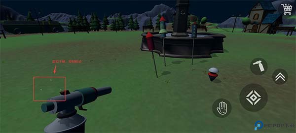 4、左下角的虚拟手柄是控制移动;