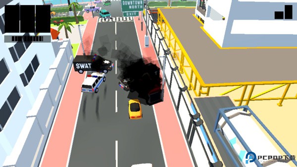 当然,那些追捕你的警察和军队可不只会追着你。他们会在道路上设置路障,有时是一两辆车横在路中间,又或者是一辆车配一个钉刺带,还会有两辆军车拦在你的面前,如果你的运气够好的话,还会有坦克向你开炮。不过,你可以选择一条路来避开他们,真正的威胁是天空中的直升机。