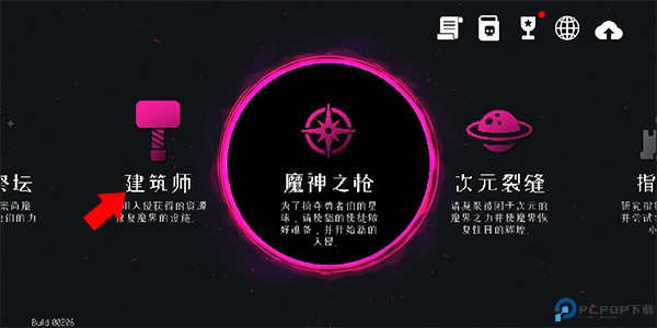 1、在本站下载并安装Dungeon Squad后打开游戏选择初始角色通关基础教程之后,来到下方主界面,首先我们点击魔神之左侧的建筑师选项