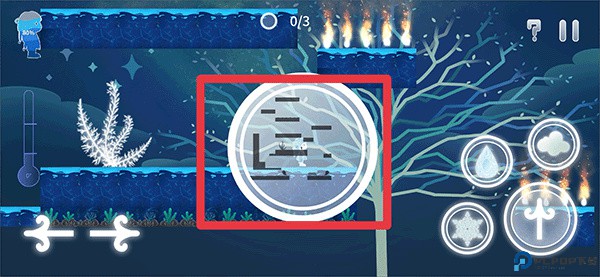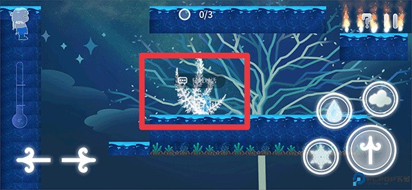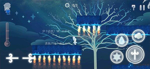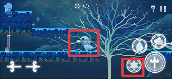 6、冰形态解锁后将角色切换至并形态,并利用跳跃箭头按钮和左右箭头按钮来操控角色向上前进,一直到此后轻触对话唤醒气形态。