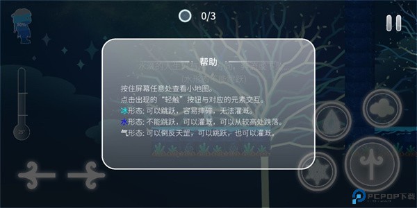 3、在游戏中,玩家可以将自己切换成水、冰、气这三种形态,水可以正常行走也不怕坠落,冰可以跳跃,但惧怕坠落。气可以上游戏地图颠倒,什么都不怕。但想要换回地图,就必须要换回水形态。