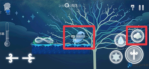 5、接着将角色切换成水的形态,前往底部,轻触对话唤醒冰形态。