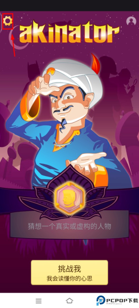 1、打开akinator网络天才游戏,点击左上角设置按钮;
