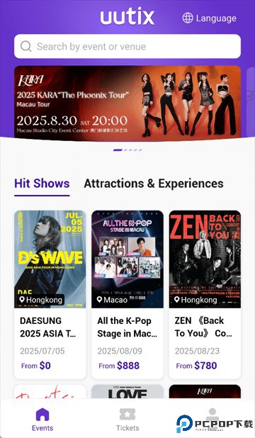 uutix是一款专业的购票软件,用户在这里可以购买演唱会、戏剧、展览等各个地方的票,可以自行切换到熟悉的语言,并且还能看到各个演出的资讯,内嵌座位图,你可以选择最佳观赏位置,软件会实时更新售票的最新动态,方便第一时间购买心仪活动的门票,支持多种支付方式,在线就可以直购票,还能查看查看电子票据,让每个用户都可以买到门票。