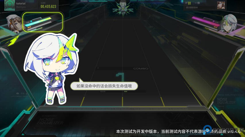 2、左侧为生命值,没命中节奏块的话就会扣掉生命值,当生命值归零时游戏结束。