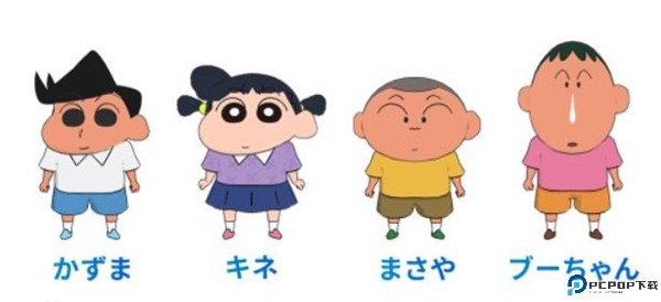 新之助在阿素认识的小朋友们。不知为何与春日部的朋友们长得一模一样。