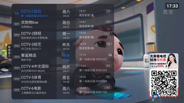 1、打开云海电视app,点击左侧屏幕,用户可以选择要观看的电视频道;