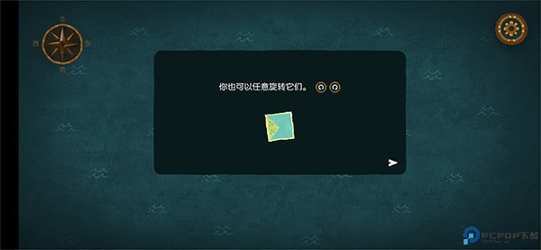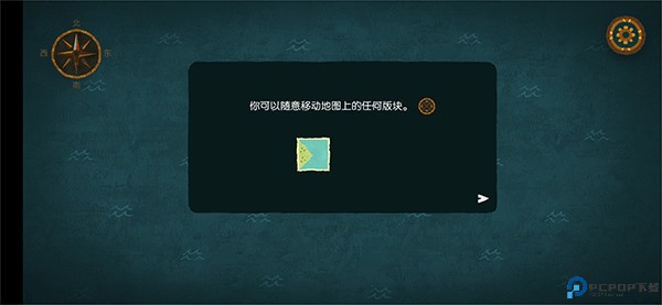 9、将黄色边框选中要移动的地图,点击箭头选定,然后使用左边轮盘来移动地图,地图摆放完成后点击地图按钮即可进入地图中进行探索