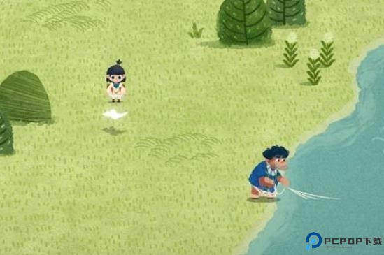 树林中同样有一个白色碎片,将其拼入后会出现一个新的NPC“阿伯”。阿伯找不到回家的路,卡朵需要将阿伯所在的版块拼到此前房子的东边。