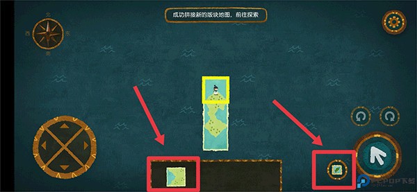 8、在探索区域获得新地图后,点击地图按钮进入地图页面,然后选中新地图版块进行拼接