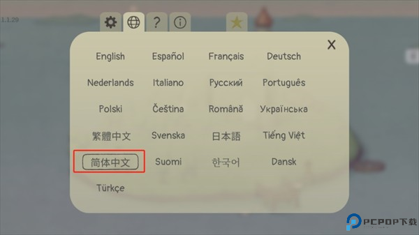 3、最后,选择“简体中文”即可将游戏界面切换为中文版。