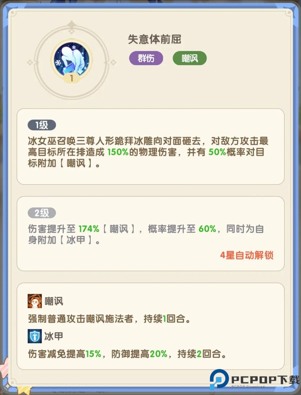 1、冰雪女王作为队伍前排,拥有嘲讽技能,能吸引敌人火力并大幅削弱敌人攻击。