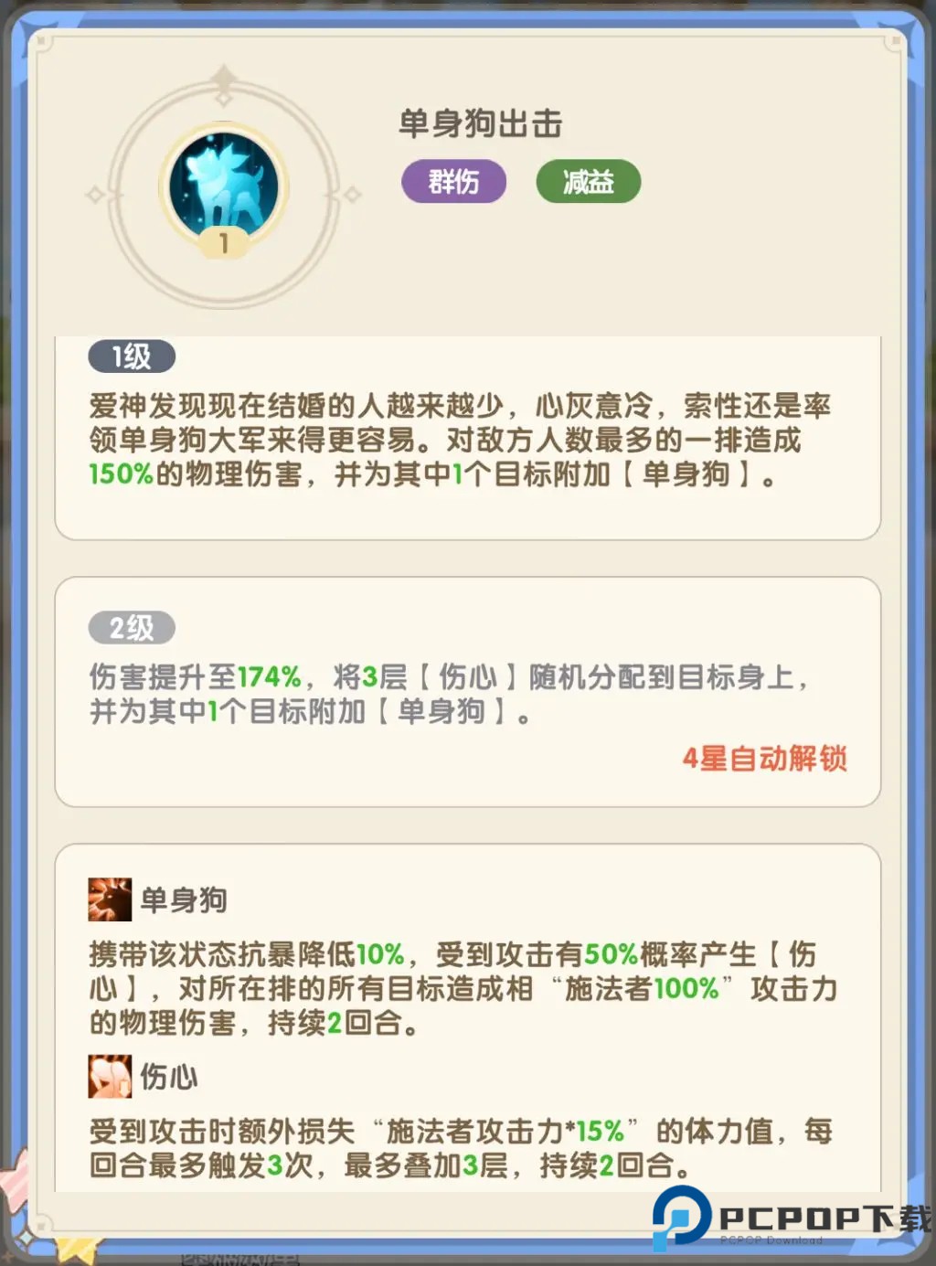 4、火姑娘为红色伙伴,易于获得,裂伤特性让敌人在每回合损失体力,补充强力AOE输出。