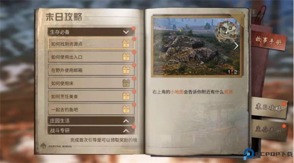 根据任务指引完成新手任务后,将获得一个生存手册,完成生存手册任务不仅可以获得对应奖励,在完成任务的过程中提升熟练度,还能帮助萌新更快了解末世的情况,更快适应末世生活,并会解锁援助任务。