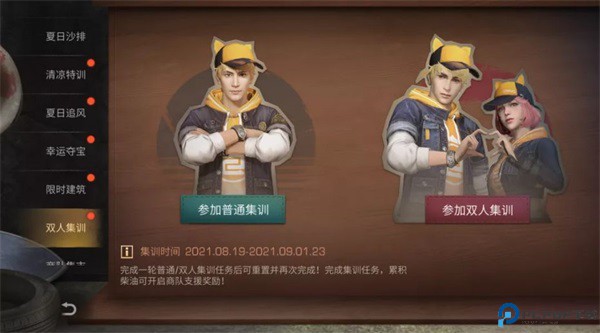 当幸存者庄园等级达到2级时(即采集、制作、战斗等级为10级),就会解锁集训入口,幸存者可以选择普通集训和双人集训,两种任务完成条件不同,获得奖励相同,任务简单,还可以获得大量熟练度噢。