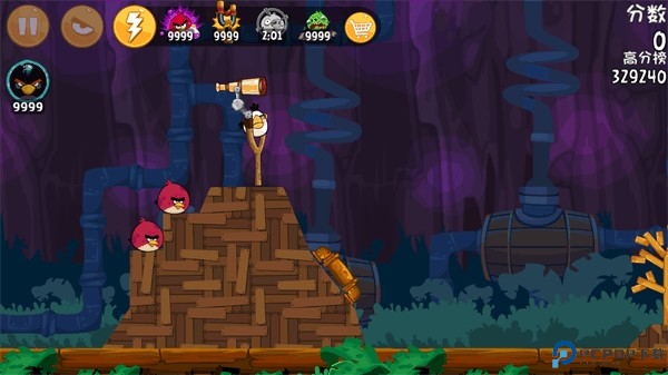 2、玩家需要在有限的小鸟数量内,选择合适的角度和力度,将小鸟发射出去,摧毁猪的堡垒。