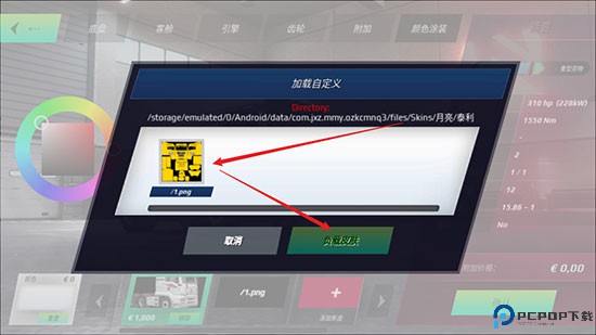 2、点开车辆,可以查看各种卡车的相关属性,并选择购买;
