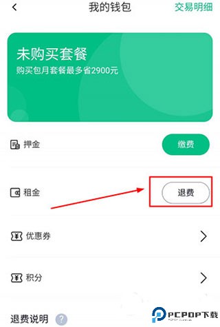 2、然后可以看到租金的功能选项右边的“退费”的功能,点击退费,通过申请即可。