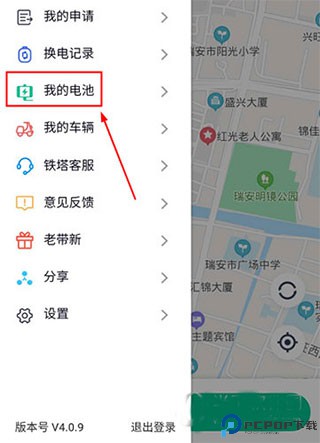 1、点击“我的电池”的功能选项,然后选择点击退电。