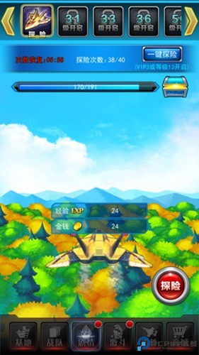 2、当玩家角色等级达到7级时就可开启【探险】功能,而在13级时将会开启【一键探险】功能,彻底解放奥粉们的手指。每一次探险都是一种充满期待的旅程,因为每一次探索不仅能获得金币、经验还有各种随机的奖励,而与这些相对应的是探险宝箱的开启。每次探险都会根据场景获得进度,值得一提的是进度还能造成暴击哦,随着不断的探险,当进度条被充满时我们就可开启神秘的宝箱啦。