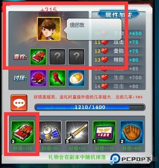 4、游戏中比较有特色的地方是玩家可以在【人间体】界面给人间体送礼物,当人间体得到自己喜欢的礼物后会提高好感度,好感度越高,增加的属性也越多,这些礼物都可以在商店购买或者副本掉落获得。相反,当人间体收到自己不喜欢的礼物时,可是会扣除好感度的哦。