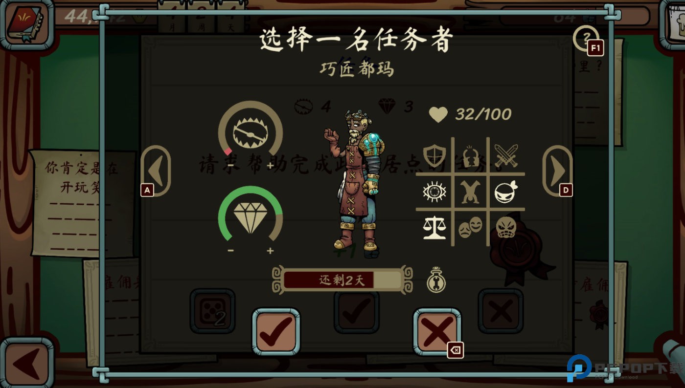 我们可以安排伙伴去做任务,任务能否完成主是看系统安排的是否合适,以及我们自己准备的是否充分,多找点不同技能的伙伴,多备点药水能更好的应对各种情况。装备系统也实装了,但目前也非常原始。总之当铺人生传奇是部比较容易的经商模拟游戏,与不同人物讨价还价是游戏最大的看点。
