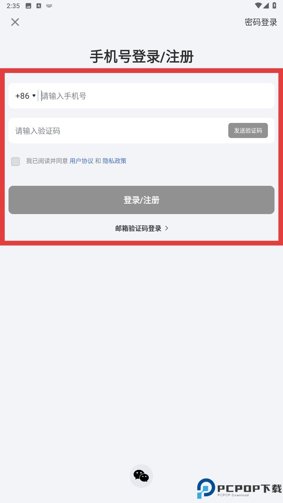 3、在手机号登录或注册页面,先勾选我已阅读并同意选项,接着在输入对应的信息,最后点击登录或注册按钮,完成登录或注册操作。