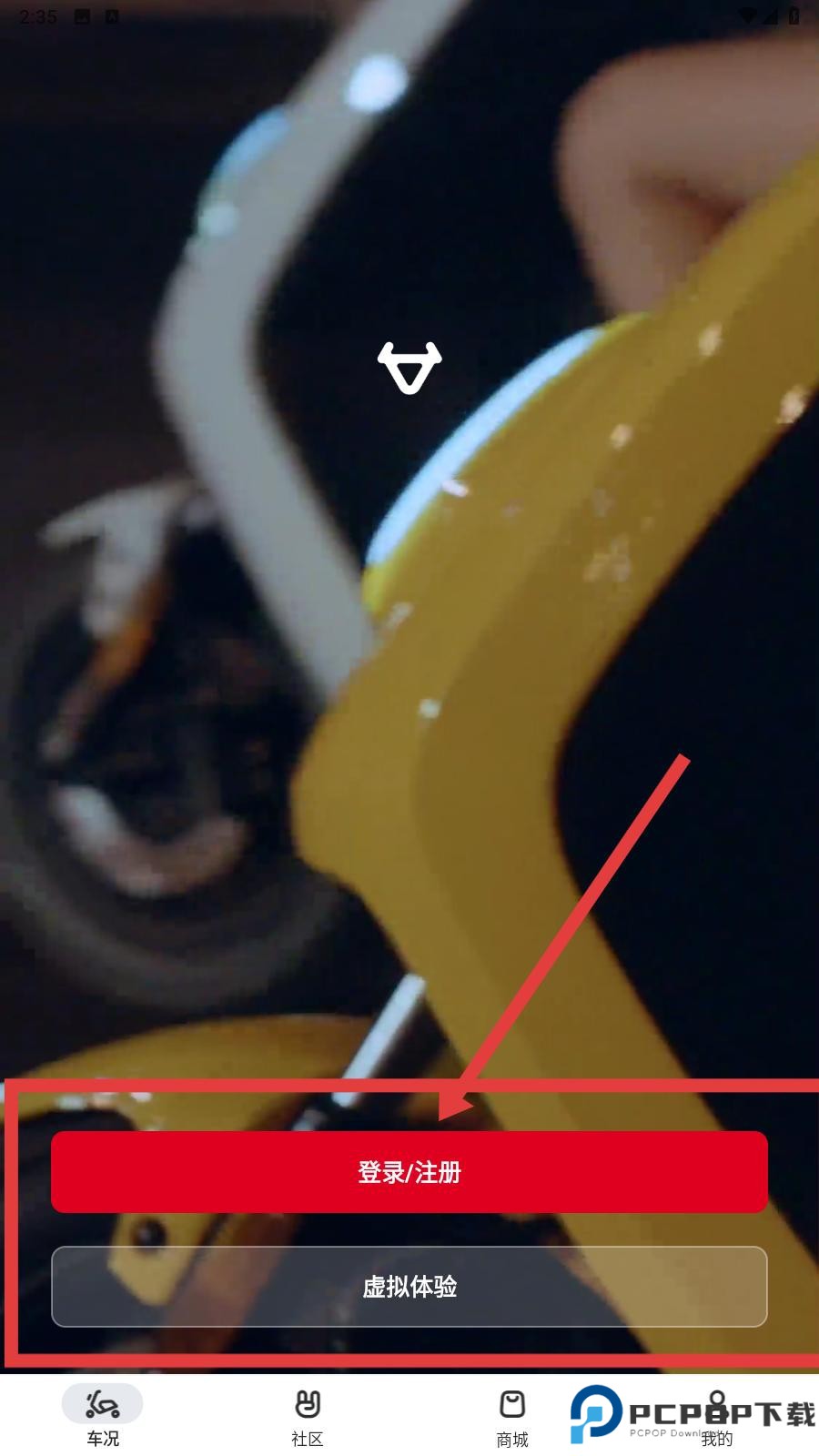 2、在主界面,点击登录或注册按钮,红色背景白色文字样式 ,进入登录或注册流程页面。