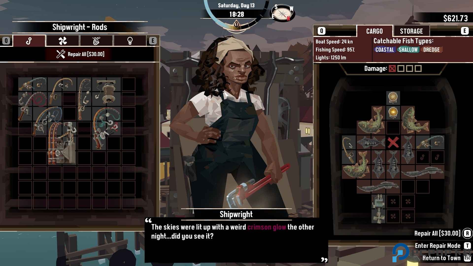 《渔帆暗涌》是一款基于开放世界的钓鱼题材游戏,采用了钓鱼模拟结合探索冒险的玩法。你需要在这里进行钓鱼收获资源,出售鱼获得到金钱并升级改造你的船只。