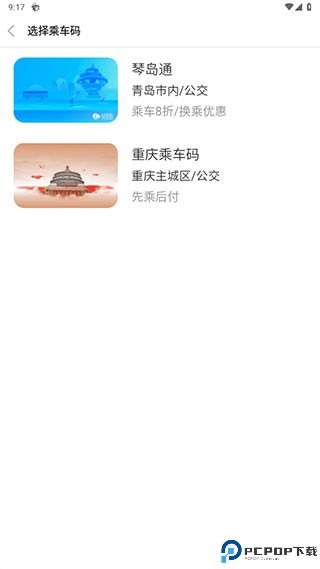 3、最后就可以选择乘车码了(app内目前只支持这2个城市,想要体验更多的扫码乘车功能,可能前往车来了微信小程序)