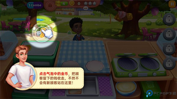 2、接着玩家了解餐厅运营流程,掌握制作食物的方法。