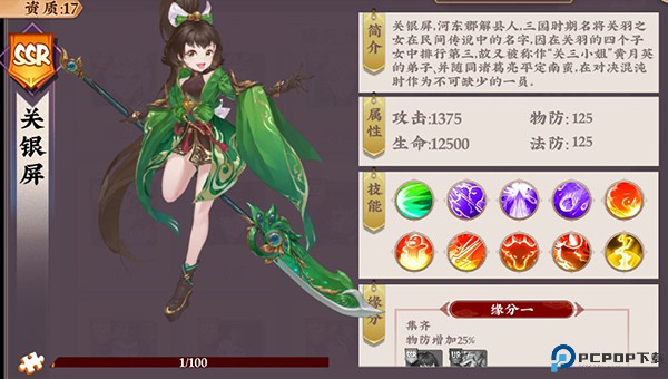 2、关银屏虽然品级低一些。不过技能赤焰一击同样可以提高暴击伤害,并且能够降低对方物理防御,自身攻击力也有加强。降低物理防御后,更方便于赵云和关羽进行输出。有了输出还需要有辅助,吴国的大乔就是非常好的人选,可以召唤出一个不能位移的治疗守卫持续治疗友军,并且提高防御。