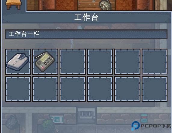 收集材料:平民服装,无线电接收机,胶带,扫把平民服装和无线电接收机,在二楼如图所示的工作台里。