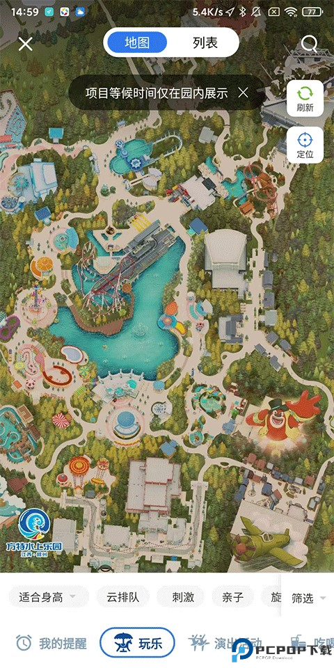 1、掌上地图,随走随玩:实时定位,项目介绍,排队时长早知道。