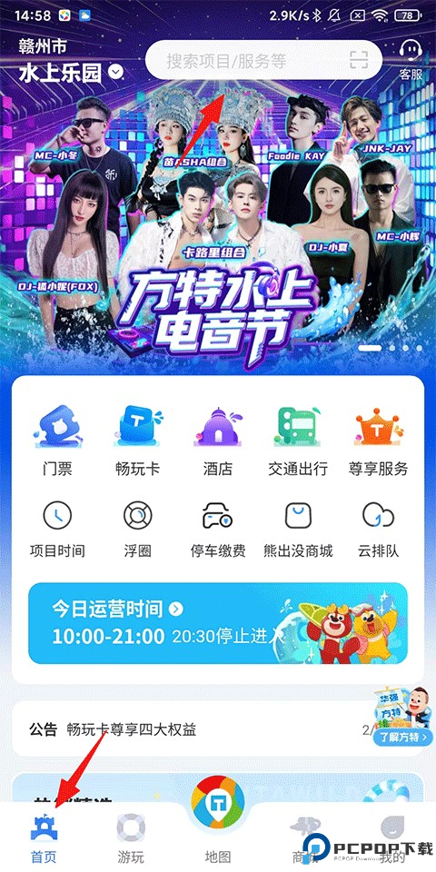 1、打开方特旅游APP,点击首页-屏幕上方搜索栏;