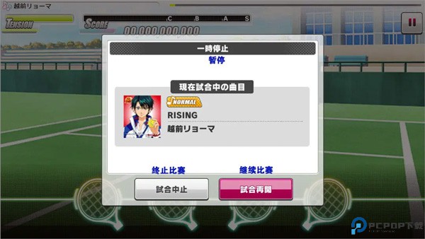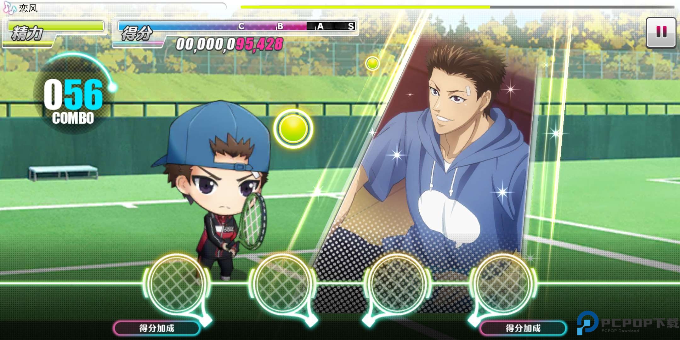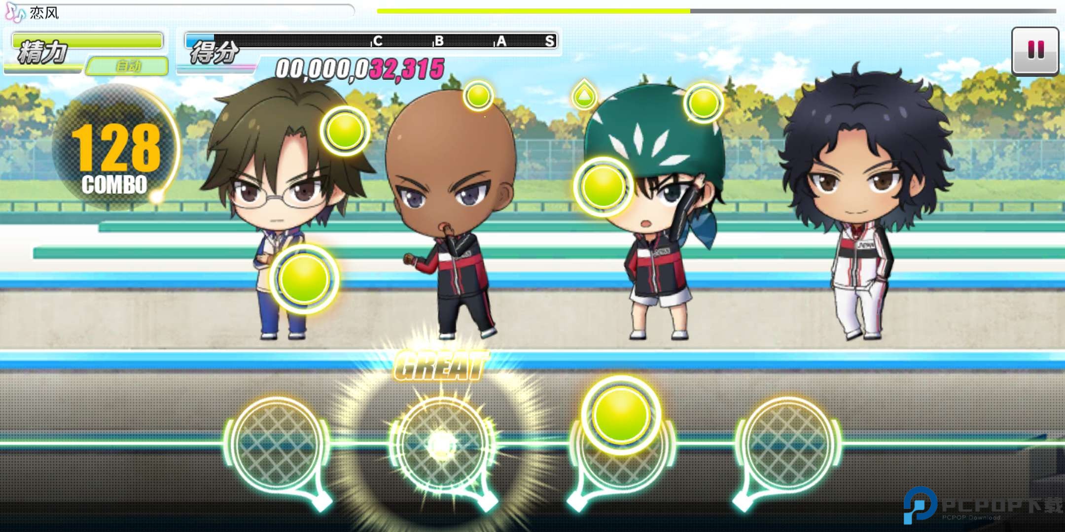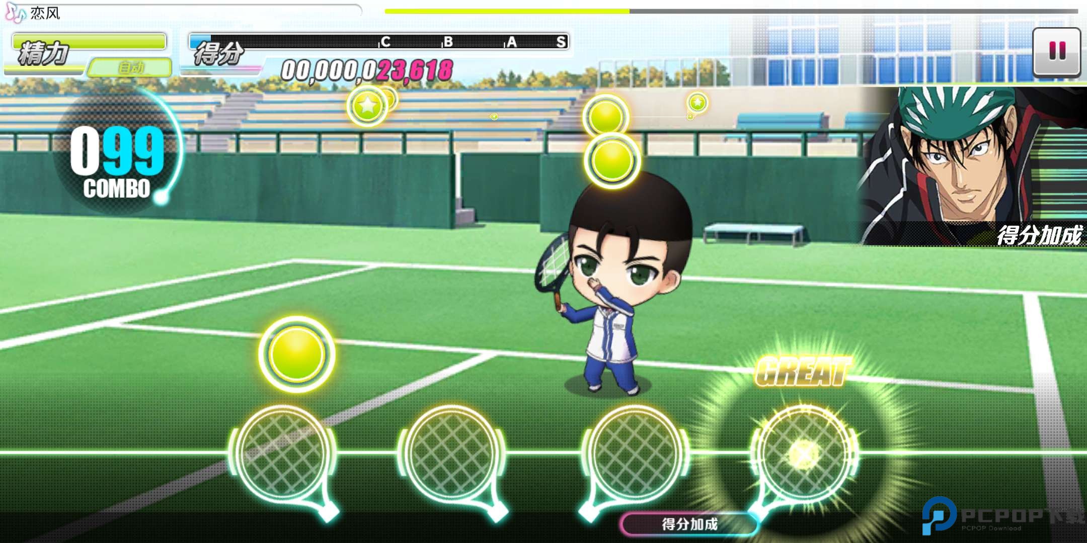 比赛就是以角色打网球形式表现的节奏游戏,通过玩游戏赢得比赛。