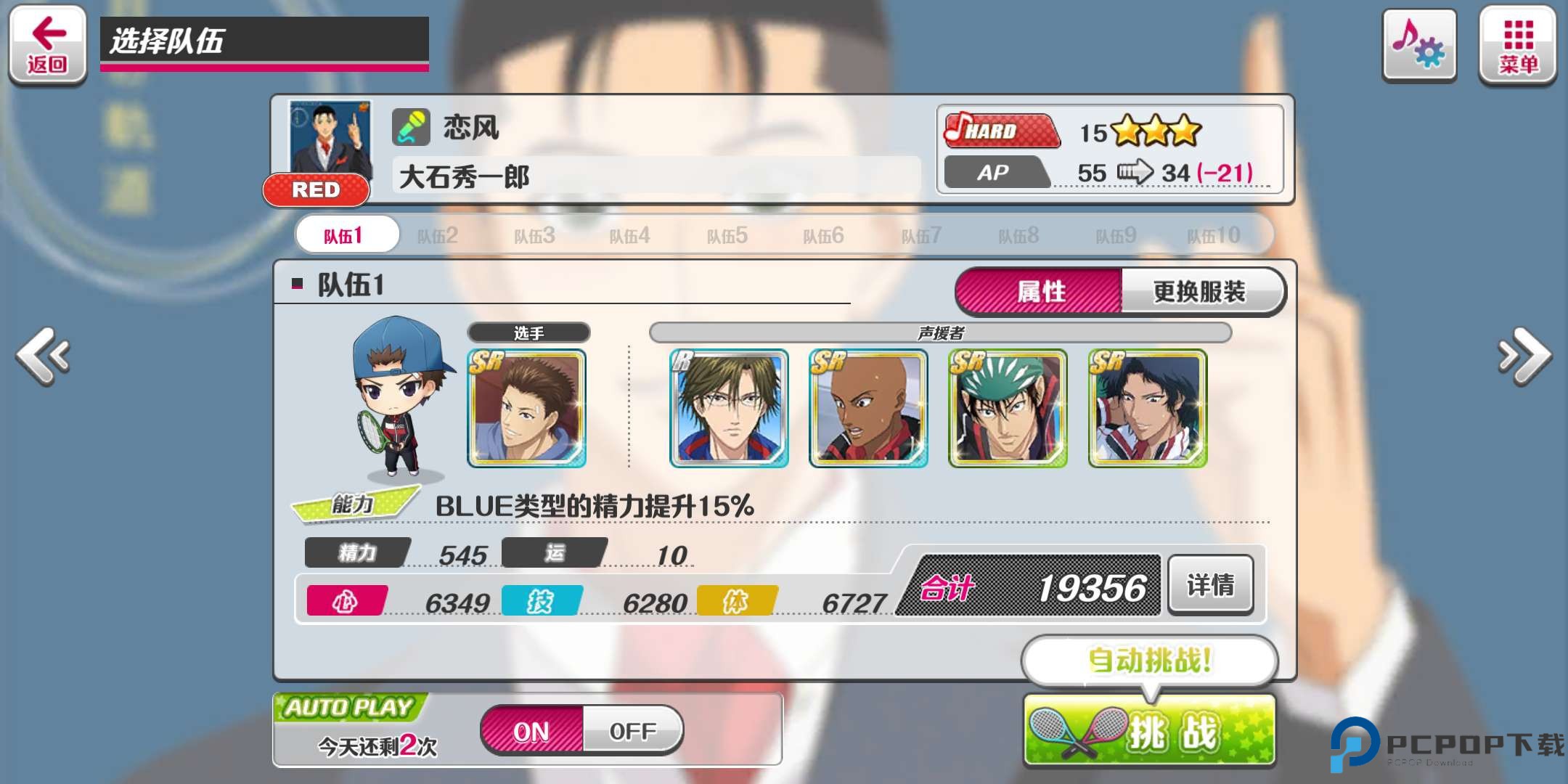 新网球王子游戏进去后官方赠送给我们20连,抽完我们会获得红,蓝,绿三种颜色的卡牌。我们优先点击卡牌→队伍编成→推荐编成,按照分类编辑四个队伍,对应每首歌的需求。