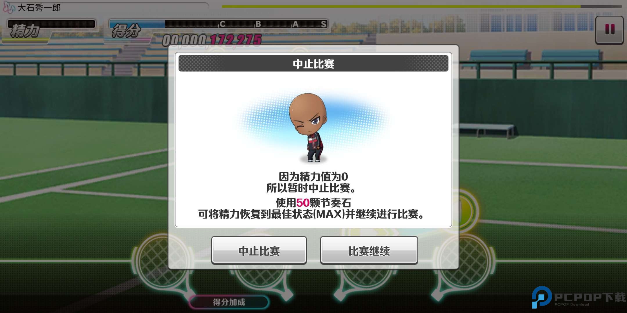 要通关15星难度的曲目,保持连击是特别重要的。因为如果断连击的次数过多,玩家在该场比赛的精力就会耗尽,精力耗尽的时候会直接弹出是否中止比赛的界面,如果玩家不支付节奏石,就无法继续比赛了。