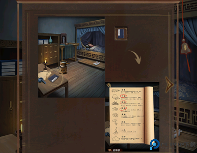 2、点击场景木桌桌面,拾取道具:百草录,可以查看到每种药材对应的形状,以及被红圈圈起来代表所需要的药材。