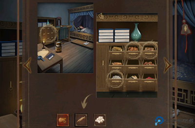 15、完成机关获得铜钥匙,使用铜钥匙打开床榻边的柜子,打开从里面获得士兵的盔甲。