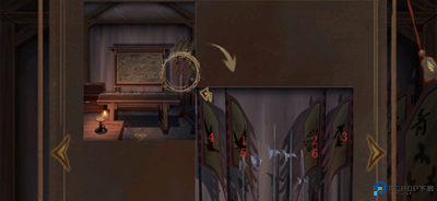 20、点击场景左侧木箱子,根据房屋图案以及按钮颜色判断,输入密码七二五九打开木箱,获得军旗。