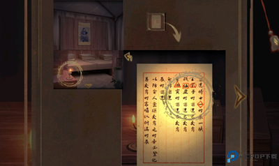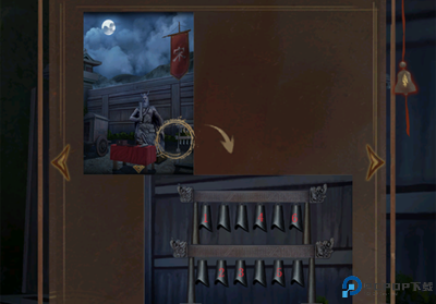 10、在旁边的盒子下面有一张纸,对着火光查看一张纸可以看到被符号圈出来的四个字。