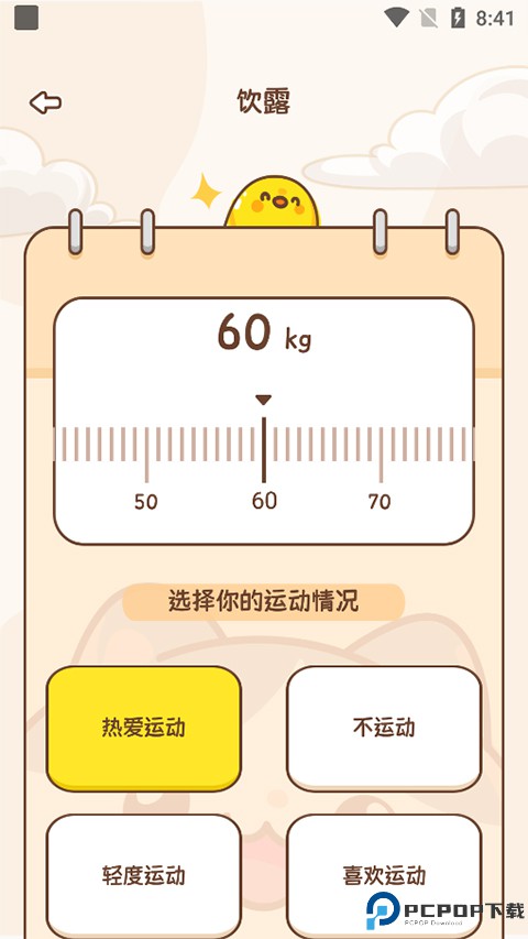 3、然后返回首页点击饮露,在打开的新页面中选择自己的运动情况,然后滑到页面底部点击【确认】