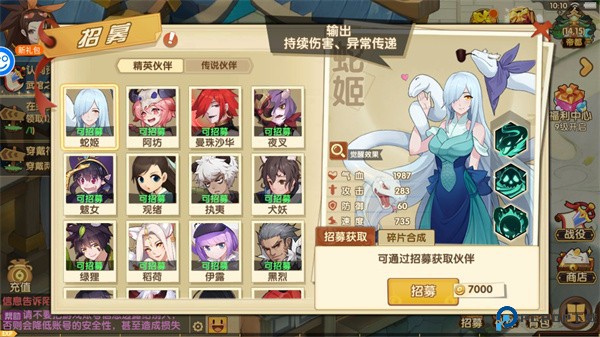 通过招募系统招募精英、传说伙伴,可以让你的队伍更加强大;
