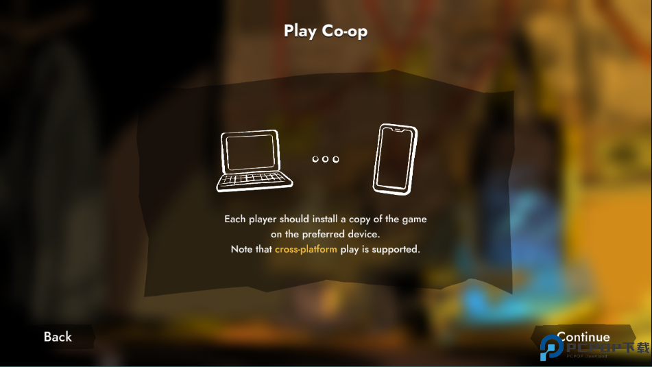 2、每个玩家都应该在首选设备上安装一个游戏副本,请注意,支持跨平台播放。点击【continue】继续。