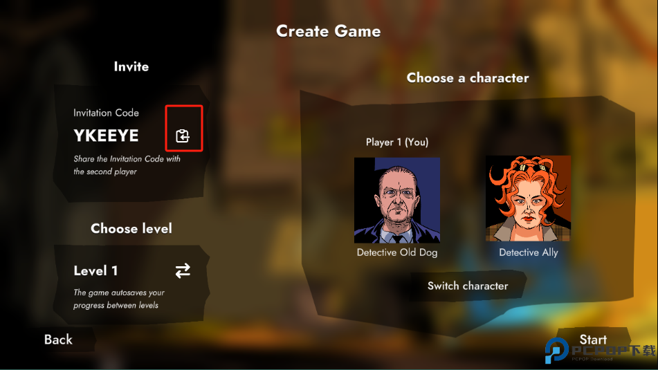 5、这个游戏被设计成两个玩家一起玩。在开始之前,另一个玩家需要先分享邀请码给第二位玩家加入,点击左侧的分享即可