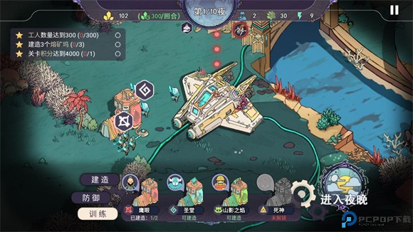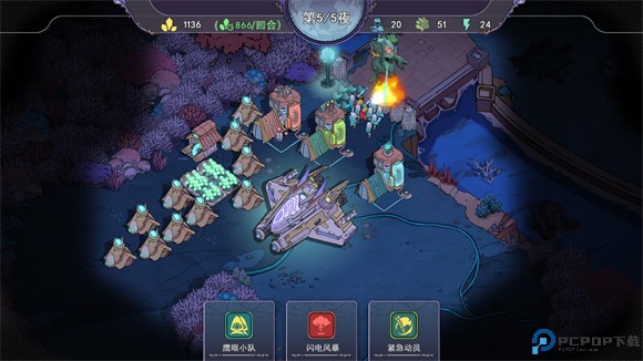 5、夜间作战期间可使用卡牌功能召唤部队或释放特殊技能,成功击退敌人后会回到白天阶段,为下一波攻势做准备。